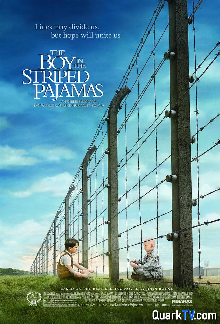 描述:八岁男孩布鲁诺(Asa Butterfield 饰)一家随着纳粹军官父亲的一纸调令,由柏林搬迁到了乡下。失去了朋友们的布鲁诺很快对新家附近的“农庄”产生了兴趣,那里有一群身穿“条纹睡衣”的人终日忙碌,并且其中一个为布鲁诺一家服务,他形容肮脏,态度慎微。周遭环境和布鲁诺的举止让母亲暗暗担忧,但纳粹父亲制止家中任何怀疑既定政策的行为。 布鲁诺偷偷结识了铁丝网另一边的同龄男孩施穆尔,并时常带给他食物吃。在紧张的家庭氛围和姐姐向成人世界的变化中,施穆尔是布鲁诺惟一的朋友。某日布鲁诺决定,去铁丝网的另一边,以便见到施穆尔的父亲……